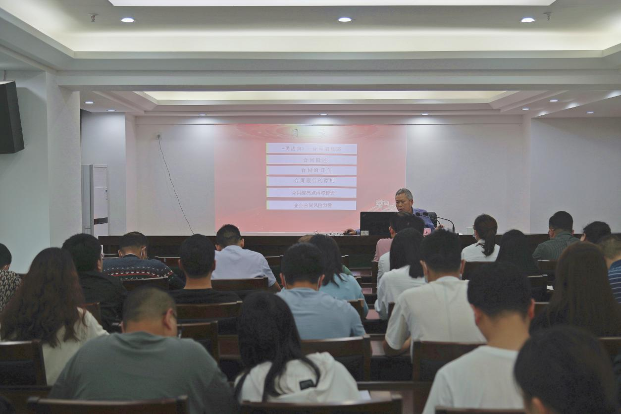 為做好企業(yè)普法宣傳工作,廣泛開(kāi)展法律進(jìn)企業(yè)法制宣傳教育活動(dòng),培養(yǎng)員工學(xué)法、懂法、用法法治思維,2022年5月25日下午,巴中發(fā)展控股集團(tuán)舉辦了法律培訓(xùn),特邀請(qǐng)巴中市律師協(xié)會(huì)會(huì)長(zhǎng)、四川砝鼎律師事務(wù)所主任朱曉光作專(zhuān)題培訓(xùn)。集團(tuán)總部員工,下屬企業(yè)風(fēng)控負(fù)責(zé)人、法務(wù)、業(yè)務(wù)工作人員共計(jì)50余人參加本次培訓(xùn)。培訓(xùn)會(huì)議指出,現(xiàn)今契約文化的重要性不言而喻,合同是保障企業(yè)權(quán)利的命脈,要推動(dòng)企業(yè)法律工作向管理型轉(zhuǎn)變,由事后救濟(jì)型向事前防范、事中控制型轉(zhuǎn)變,努力做好風(fēng)險(xiǎn)防控。