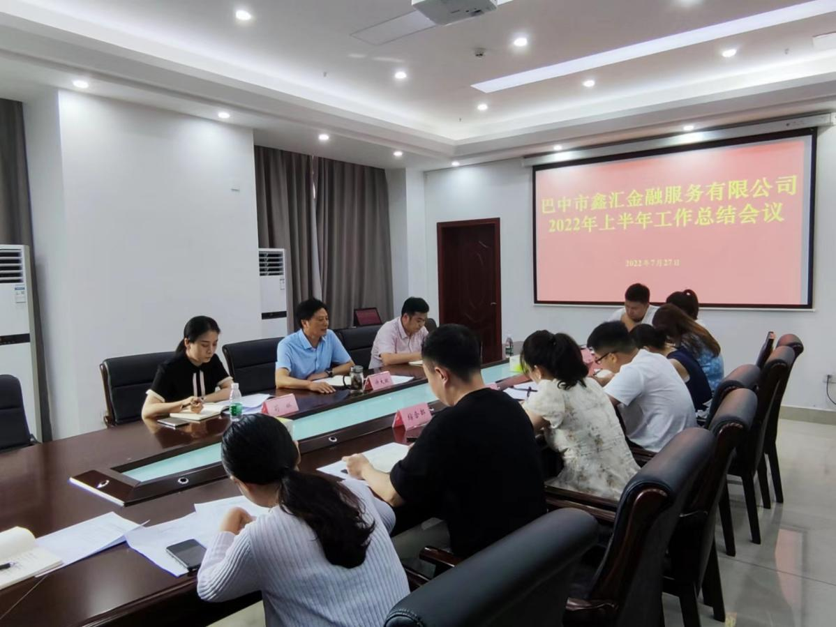 7月27日下午,巴中市鑫匯金融服務(wù)有限公司召開2022年半年工作總結(jié)會(huì),總結(jié)上半年工作,安排部署下半年重點(diǎn)工作。公司黨總支書記、執(zhí)行董事、總經(jīng)理許大政主持會(huì)議并講話,全體職工參加會(huì)議。